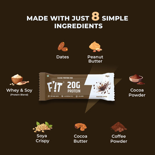 Roasted Coffee High Protein Bar - 20g Protein (Pack of 70gX10) | Made with 8 Simple Ingredients - Pack of 4