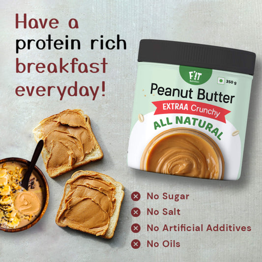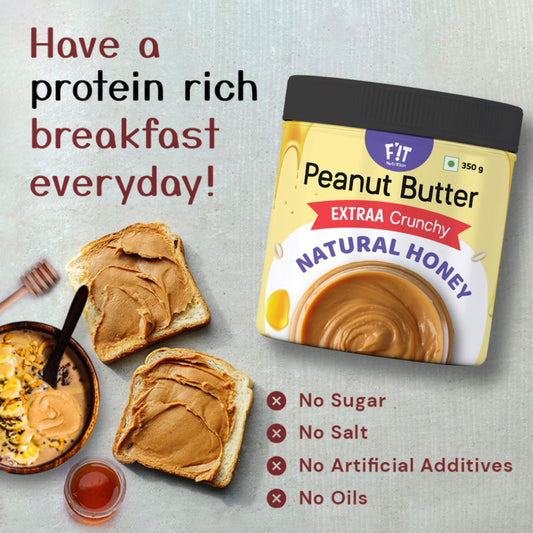 Natural Honey Peanut Butter EXTRAA Crunchy | No Sugar | No Salt | No Preservatives | Rich in Protein | Gluten Free | 350g